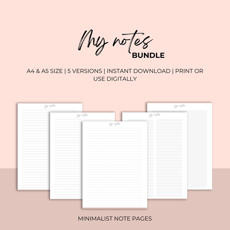 5 Digital Notes Paper, Printable Notes, Printable Notebook Template ...