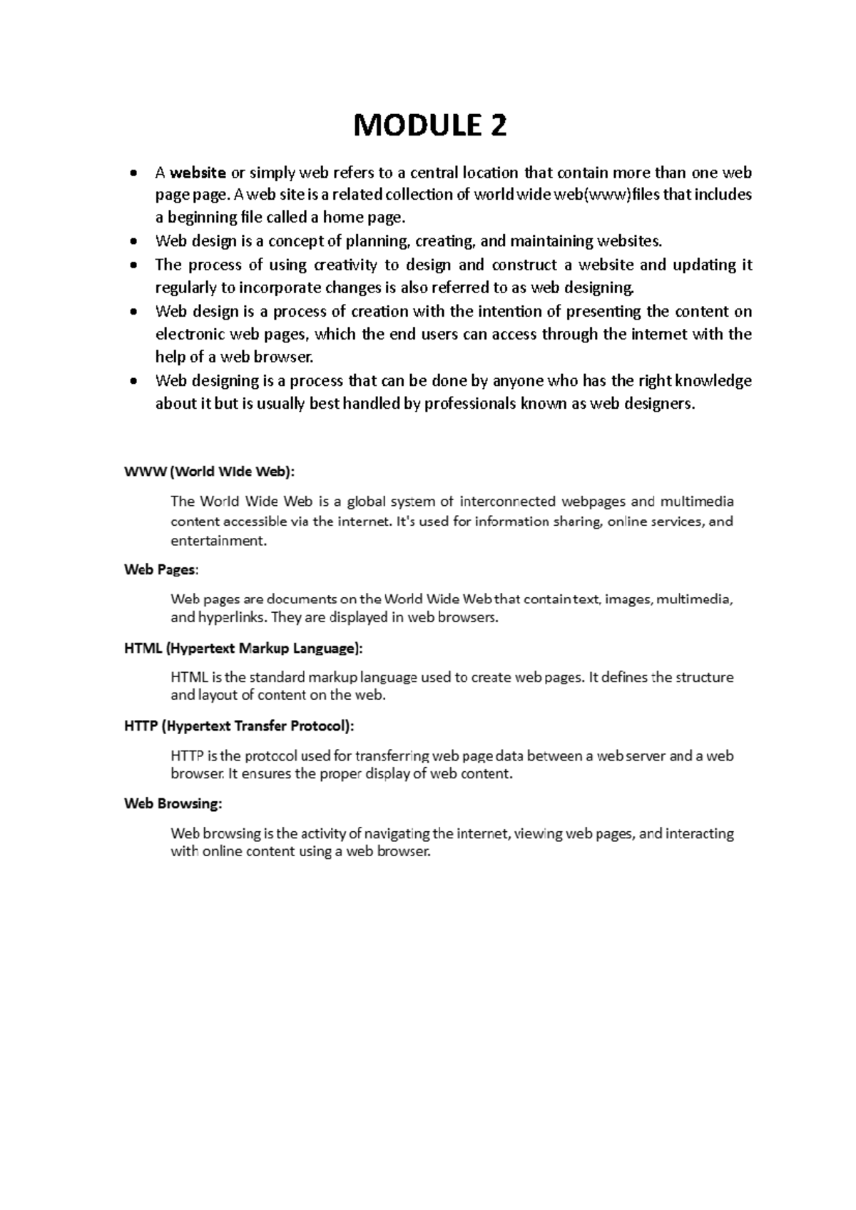 computer application - MODULE 2 A website or simply web refers to a ...