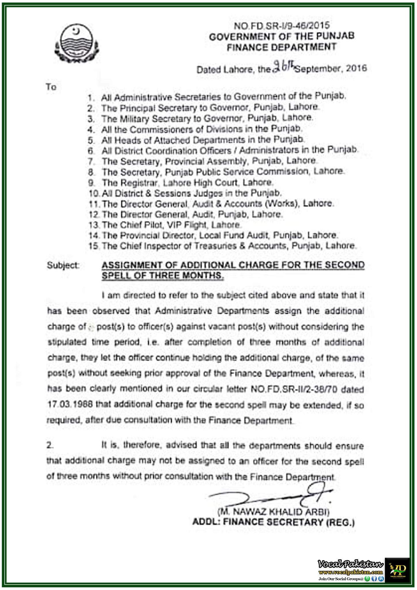Punjab Finance Department Enforces Guidelines for Extending Additional ...