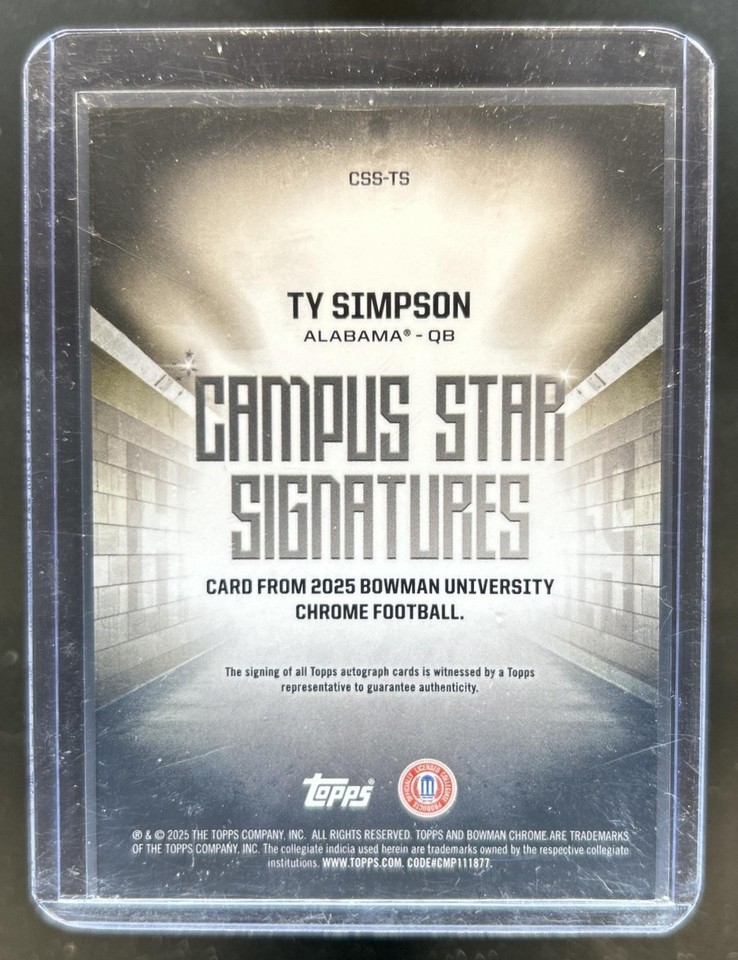 2025 Bowman Chrome University Ty Simpson Campus Star Signature Auto # ...