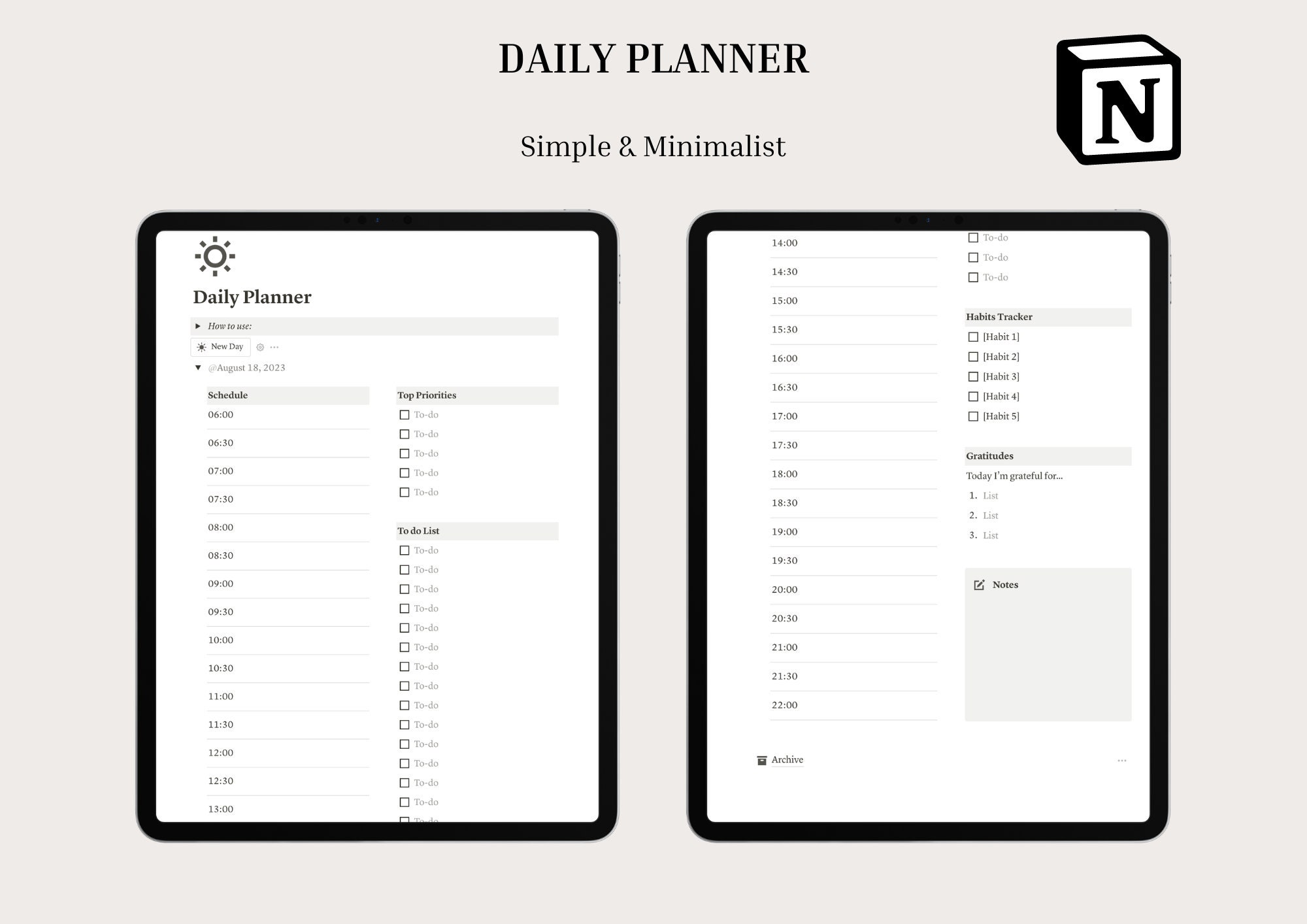 Minimalistic Daily Planner Template | Notion Marketplace
