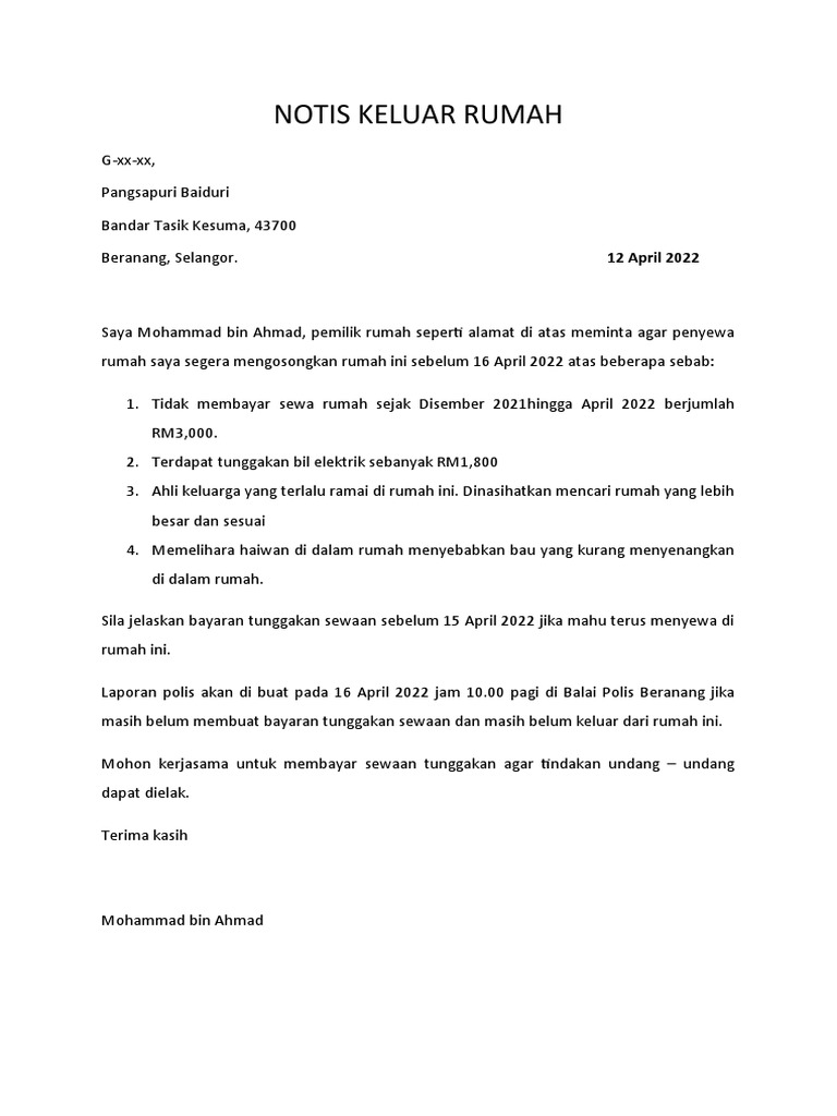 Format dan Contoh Surat Notis Pengosongan Rumah Sewa untuk Penyewa ...