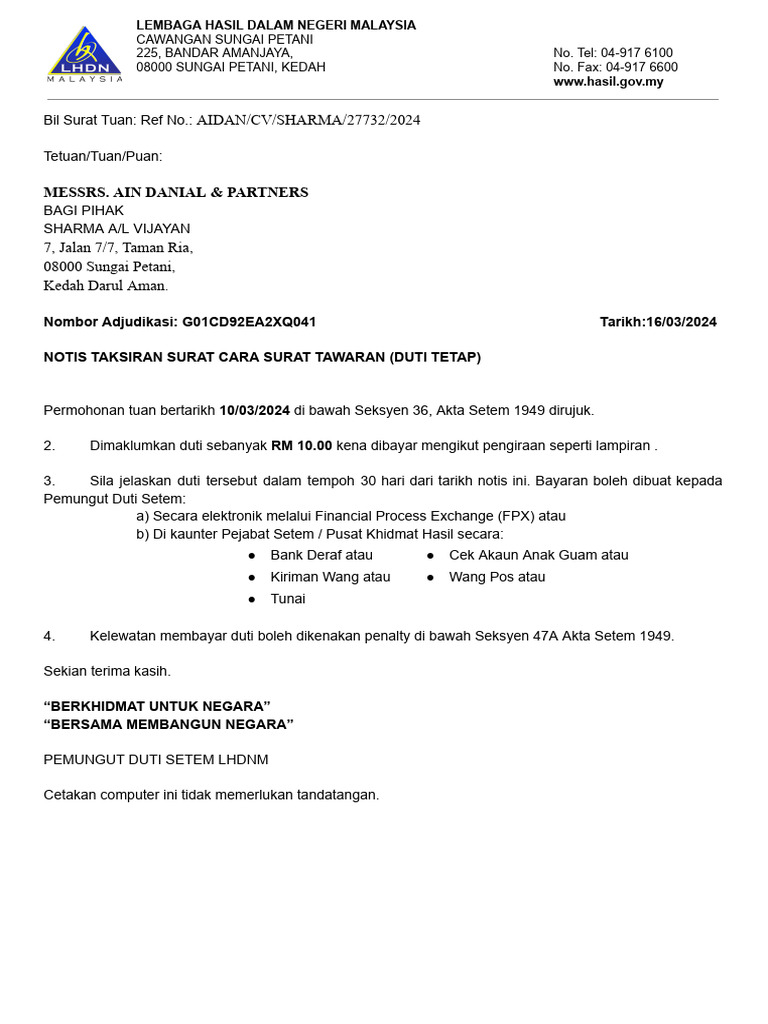 Notis Taksiran Surat Tawaran | PDF