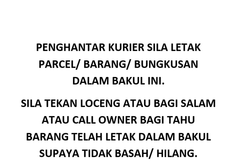 Notis Depan Pagar Penghantar Kurier Sila Letak Parcel | PDF