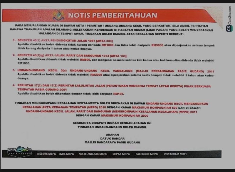 Parking kereta di depan rumah sendiri atau jiran adalah satu kesalahan ...