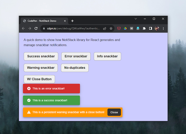 React.js Notistack Library Example to Show Material Toast Notification ...