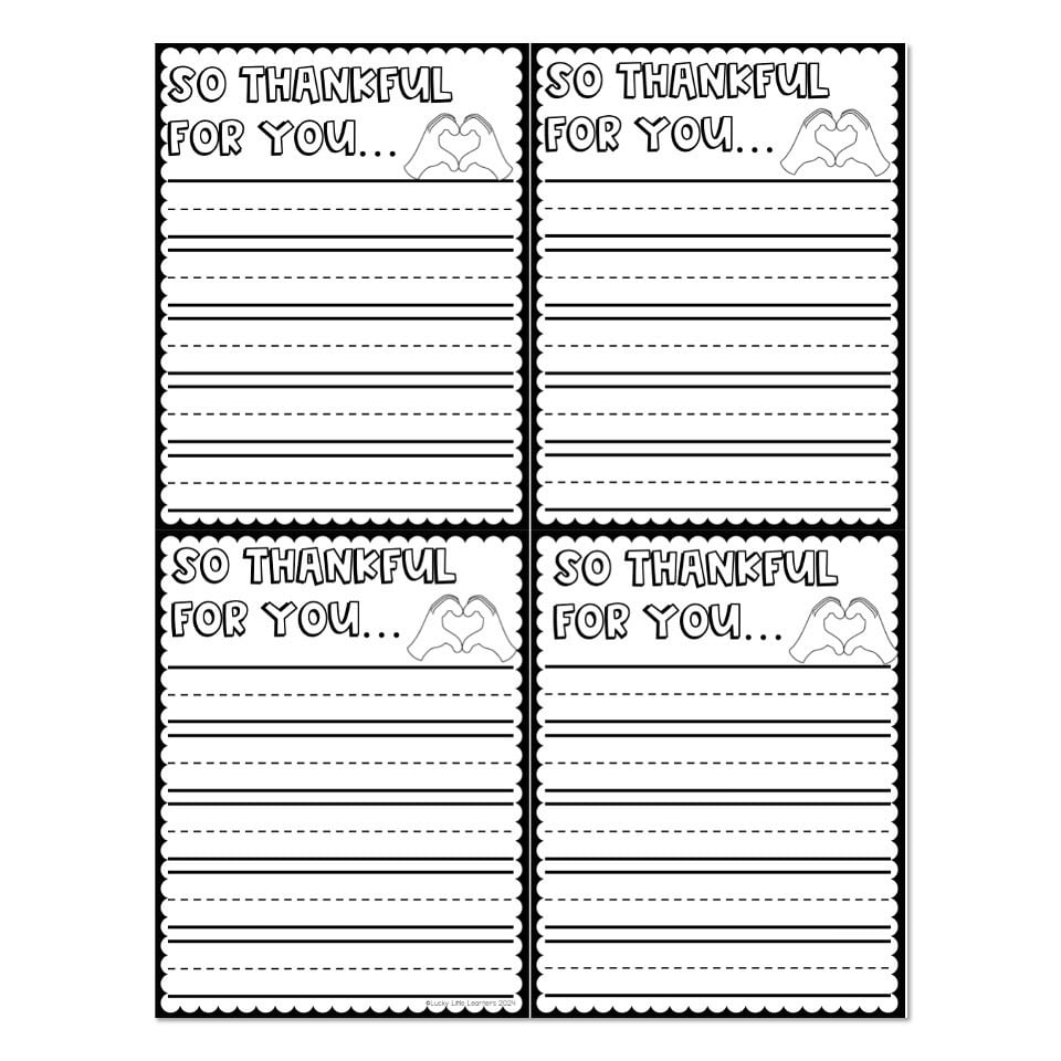 Monthly Writing Centers - November - Note - Thankful - Lucky Little ...