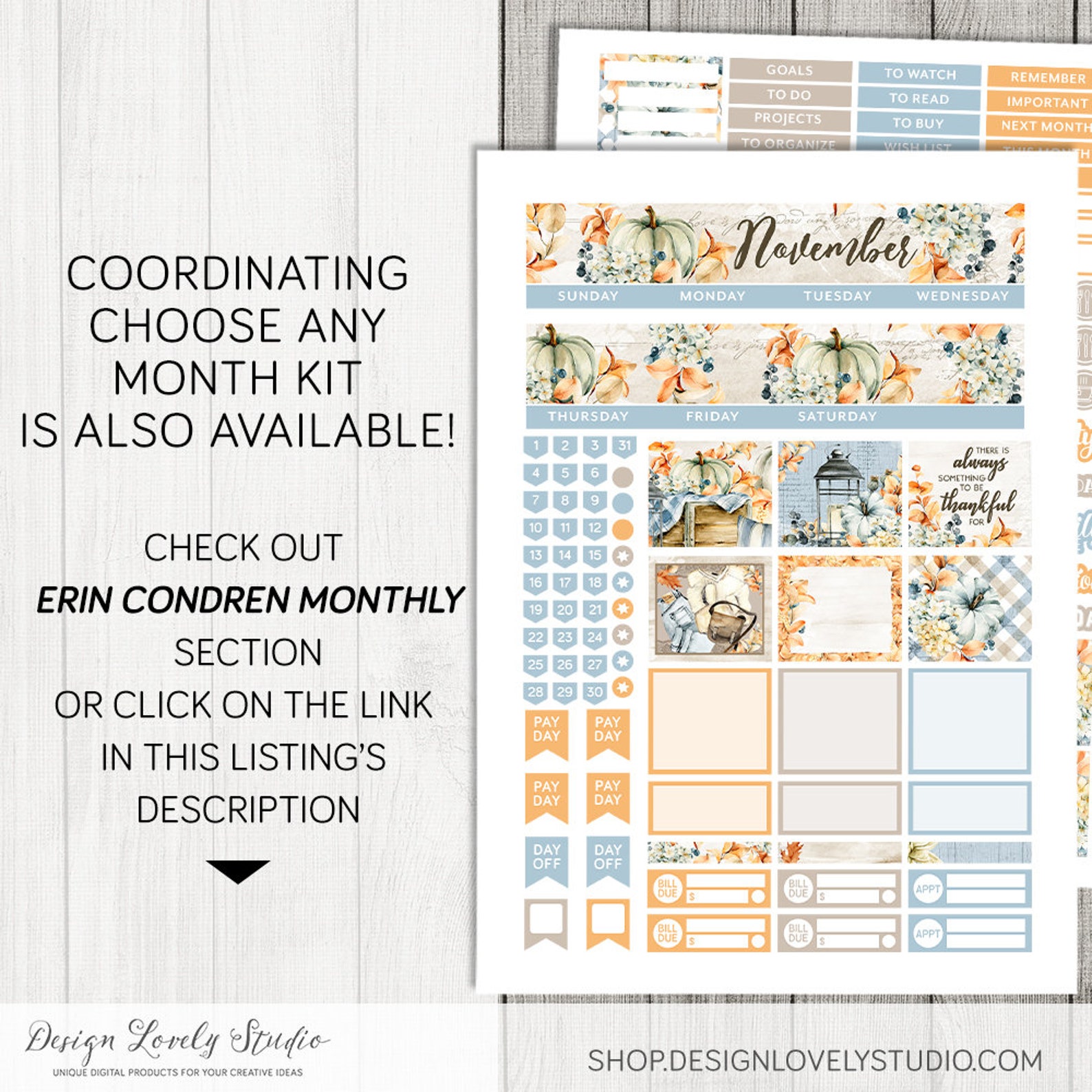 NOVEMBER 7x9 Notes Kit || Planner Sticker Kit for Erin Condren Planner ...