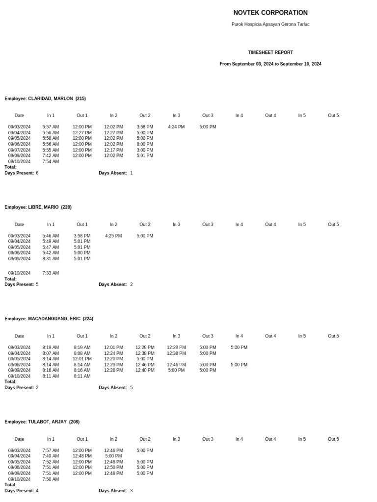 DTR - Novtek Weekly Production - Tarlac - Sep 3-10, 2024 | PDF | Home ...