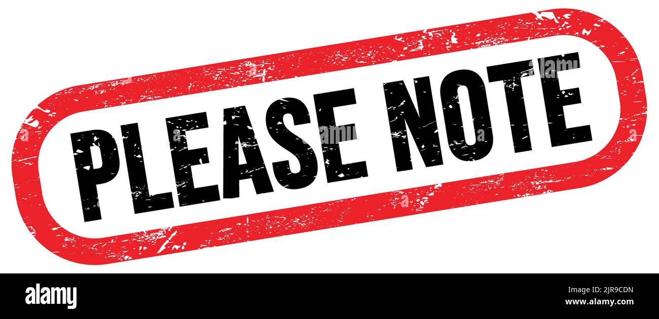 PLEASE NOTE, text on red-black rectangle stamp sign Stock Photo - Alamy