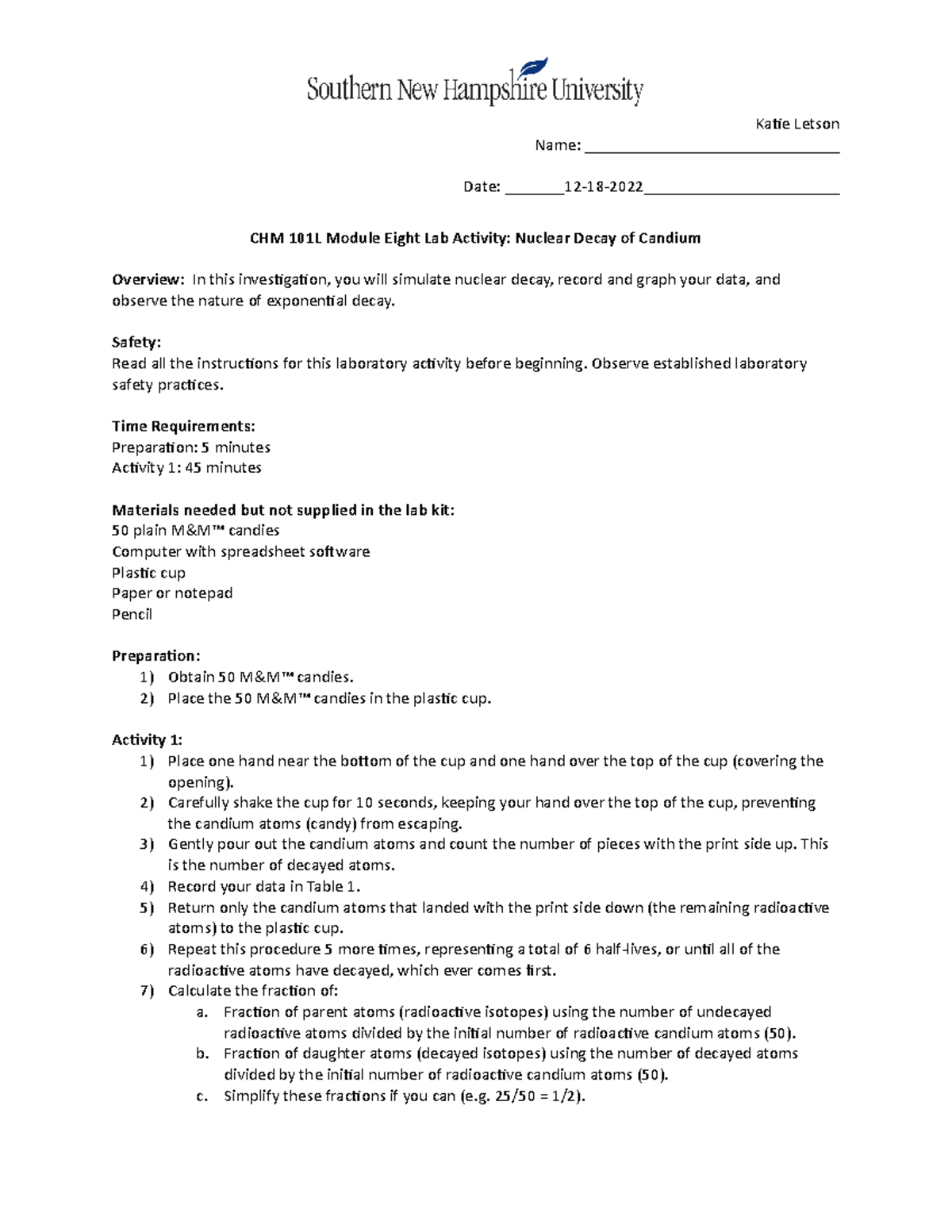 CHM 101L Nuclear Decay Lab Module Eight Activity Overview - Studocu