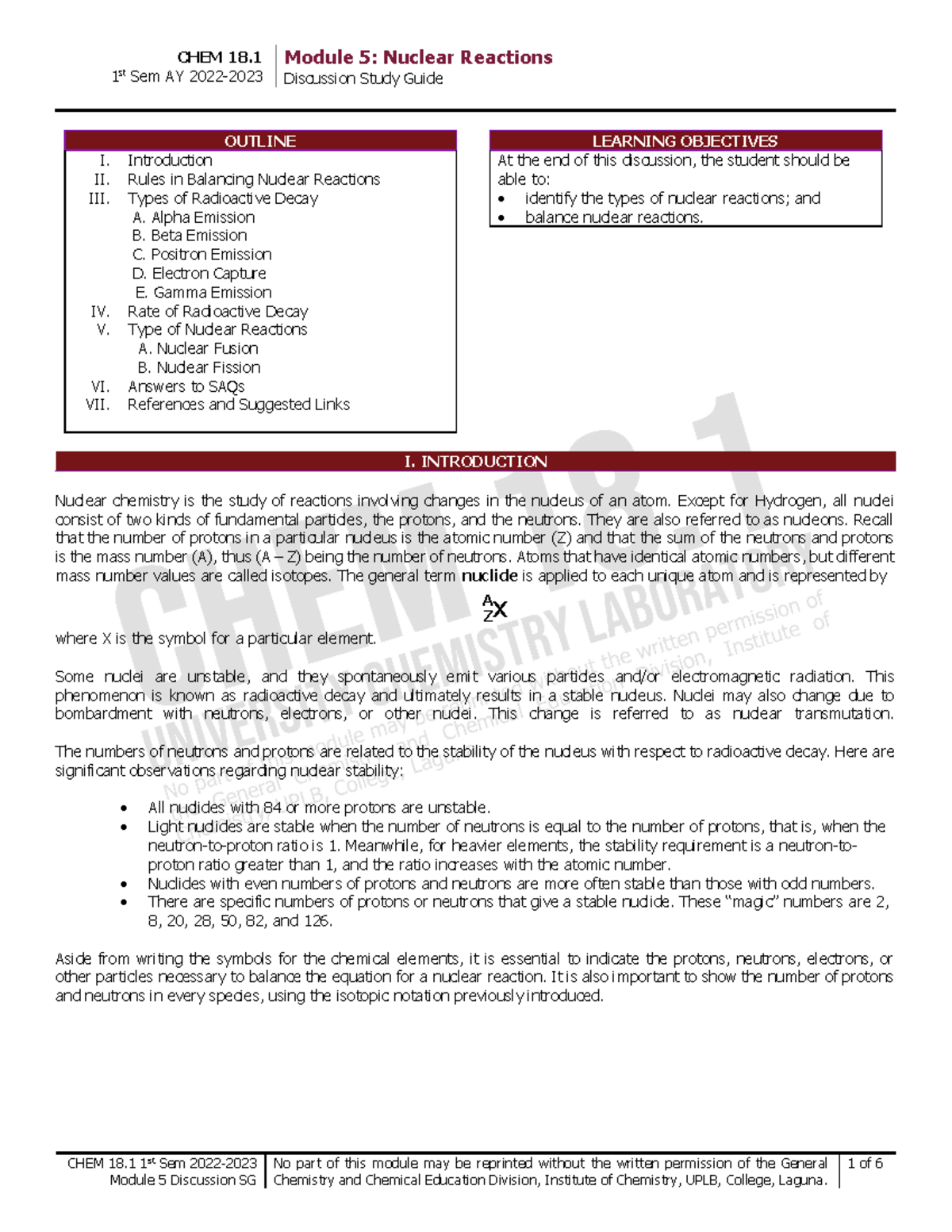 CHEM 18.1 Module 5 Study Guide: Nuclear Reactions Overview - Studocu