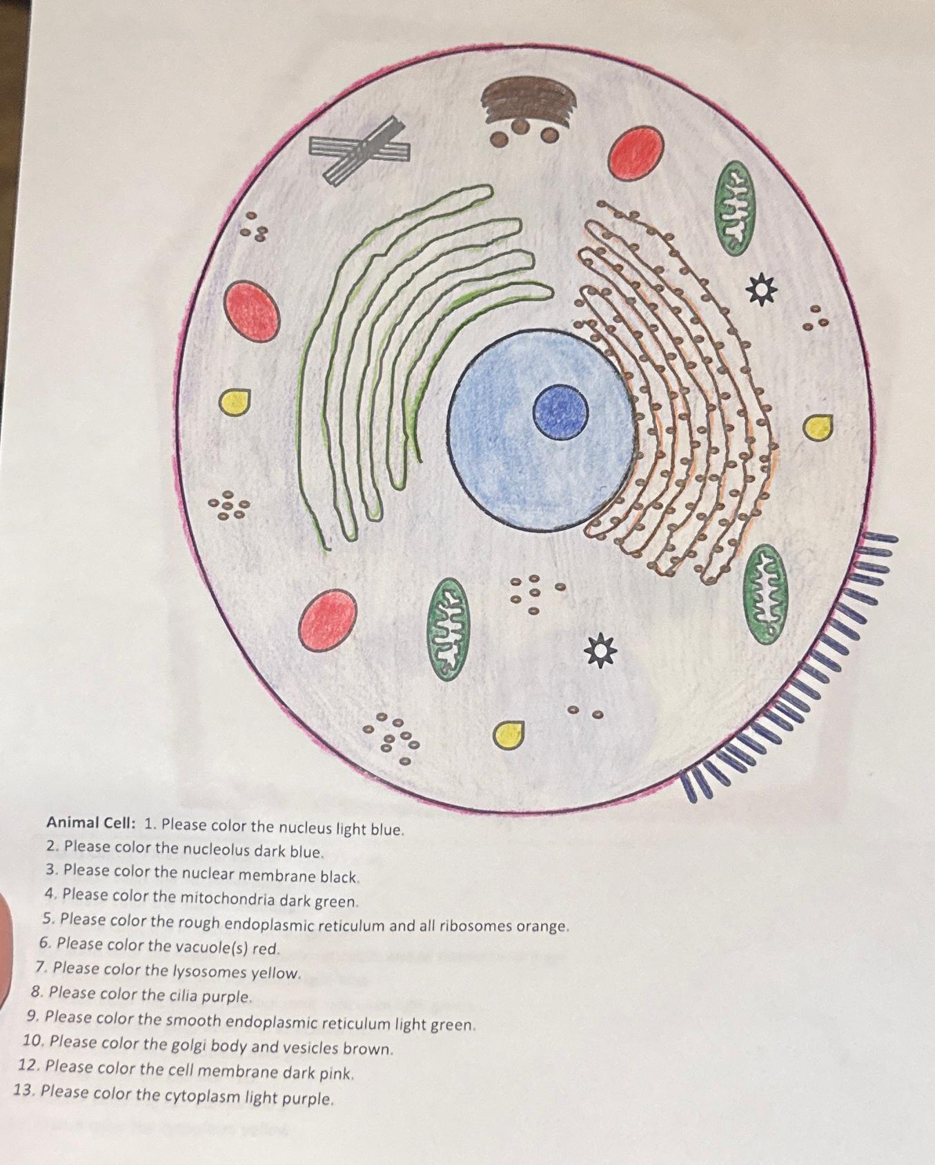 Solved Animal Cell: 1. Please color the nucleus light | Chegg.com