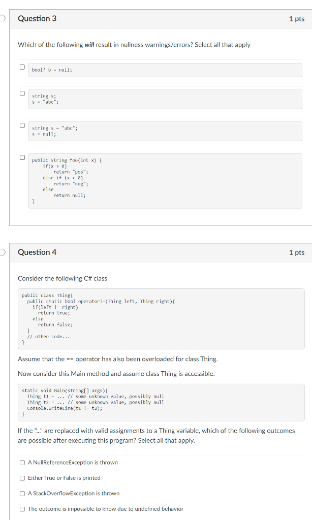 Solved Which of the following will result in nullness | Chegg.com