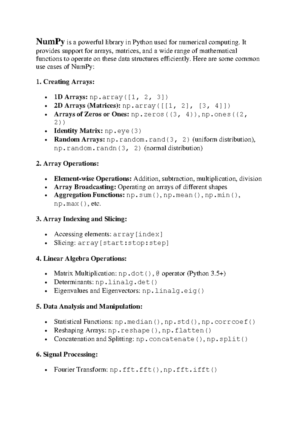 Numpy-Python - Summary sheet of important concepts - 0 - Studocu
