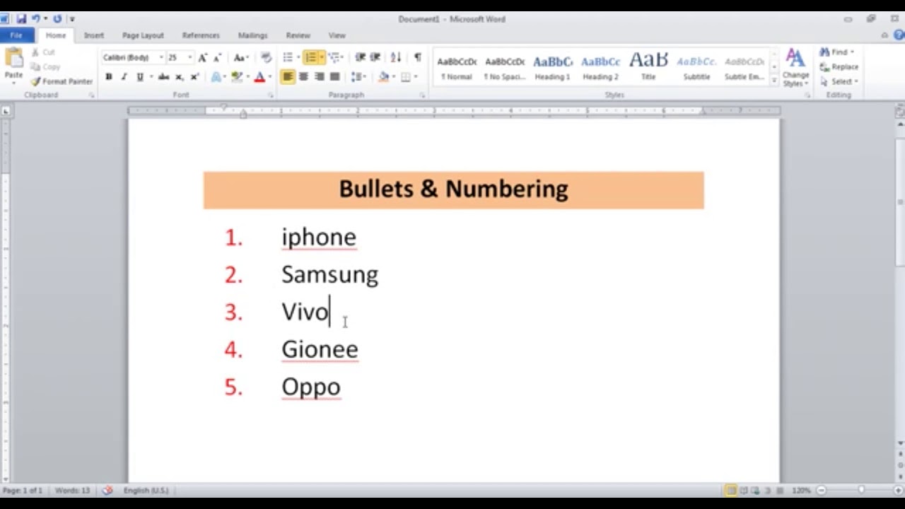 Bulleted and Numbered Lists- Microsoft Office Word 2013 - YouTube
