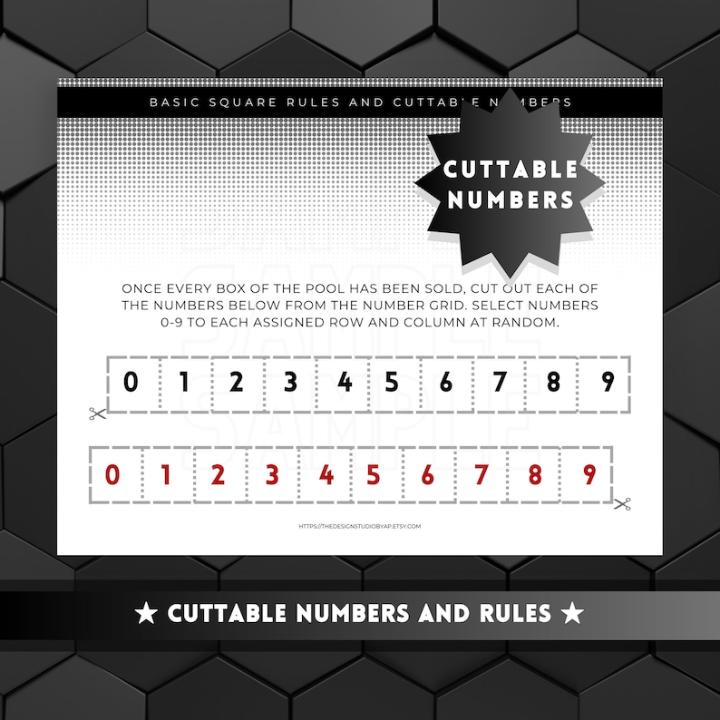 the numbers are shown in black and white, with one line drawn to each side