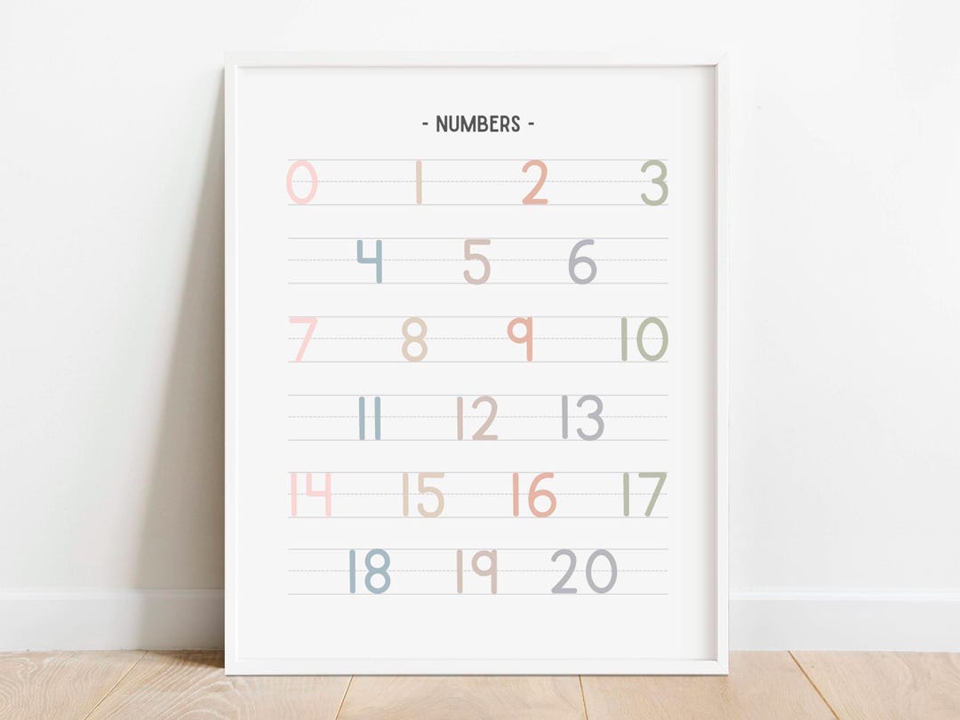 Numbers Pastel Poster, Printing Numbers Chart, Educational Wall Art ...