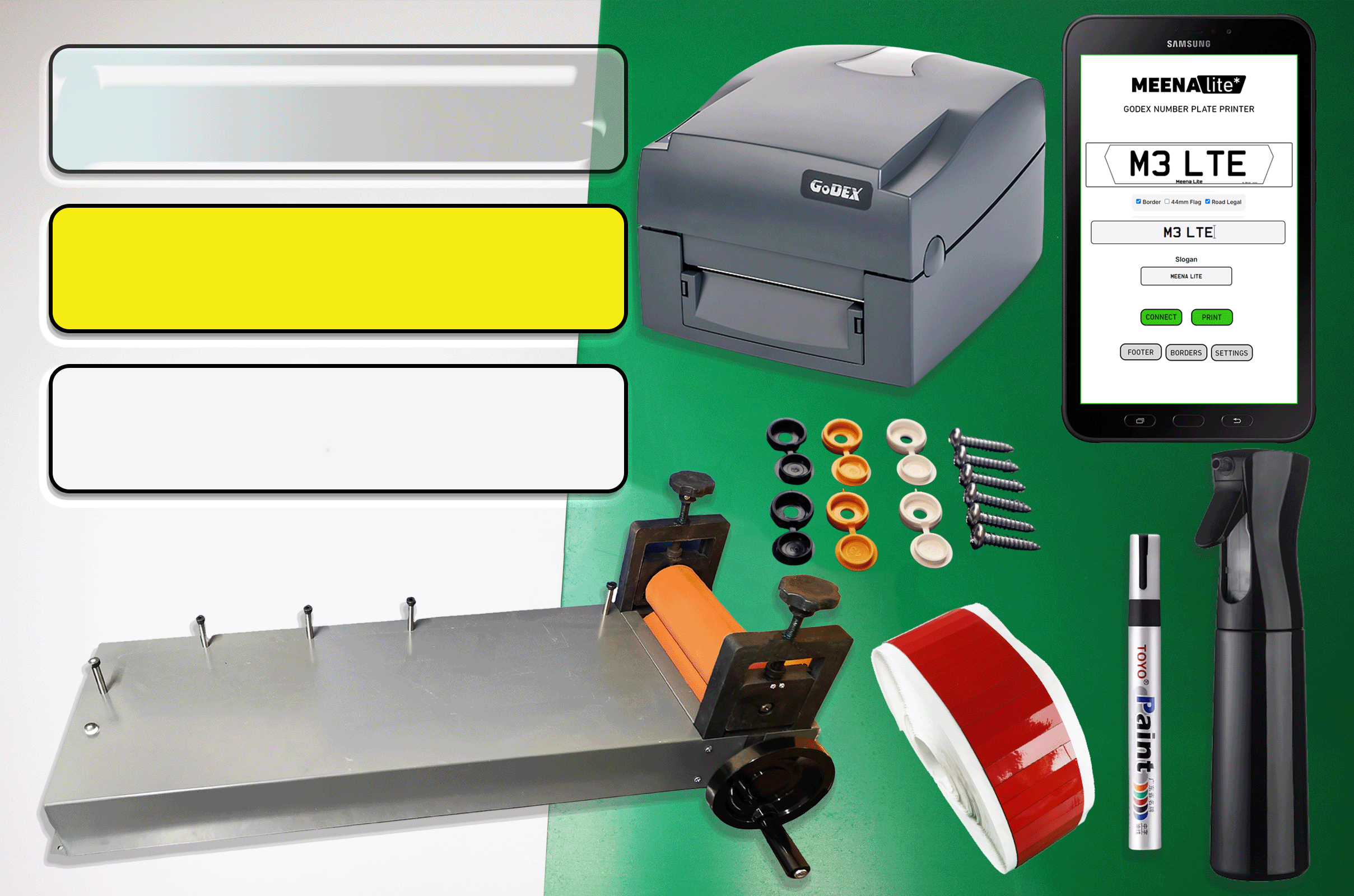 Complete Number Plate Printer Startup Kit with 25 Pairs, Roller and Ac ...