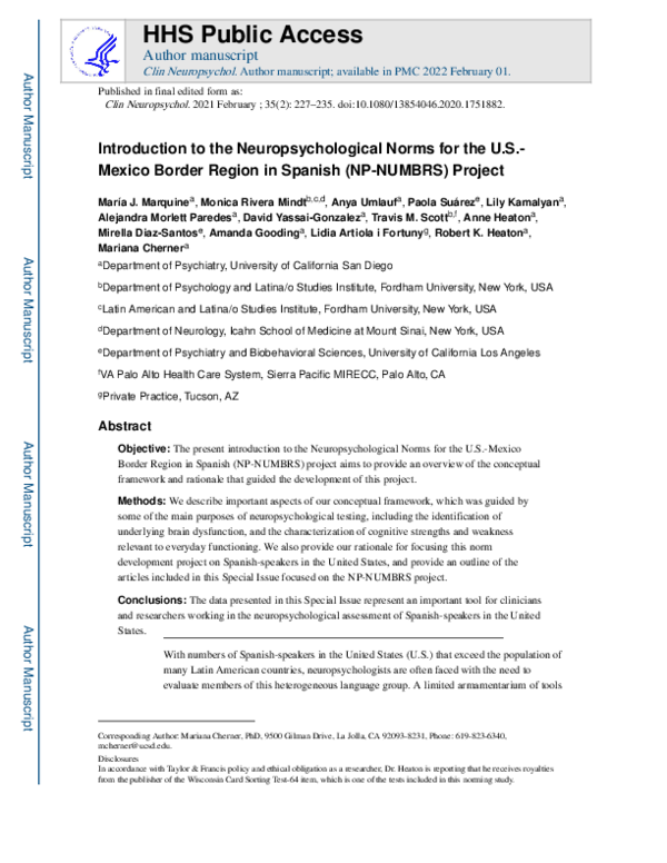 (PDF) Introduction to the Neuropsychological Norms for the US-Mexico ...