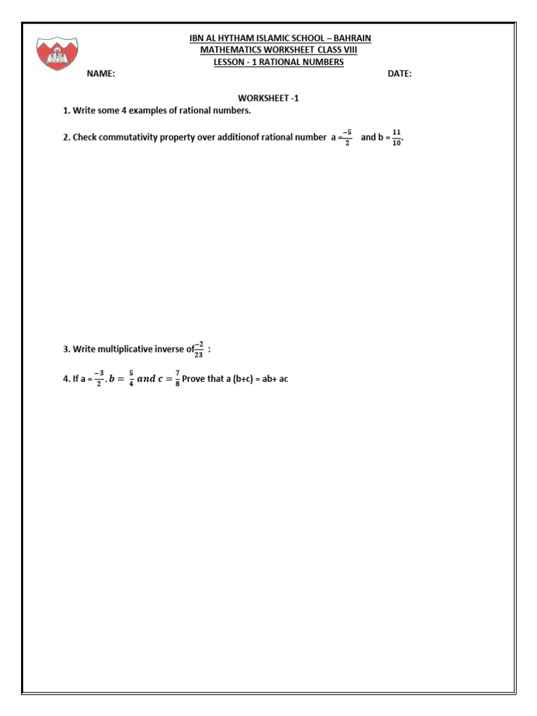 Rational Numbrs Worksheeets 2024-25 | PDF | Multiplication | Rational ...