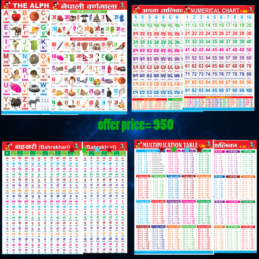 Alphabet Chart+Numbrs+Multiplicatlon+Barakhari+Ka,Kha | Daraz.com.np