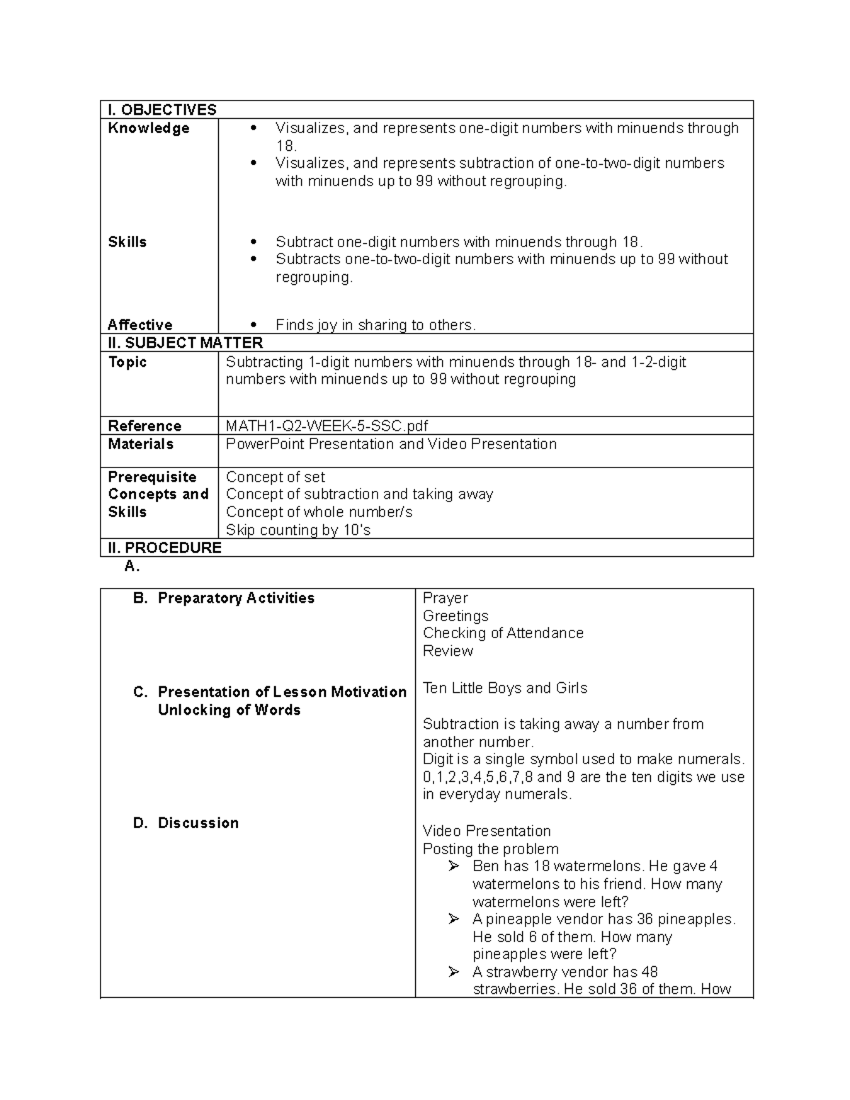 Lesson-Plan-Math - I. OBJECTIVES Knowledge Visualizes, and represents ...