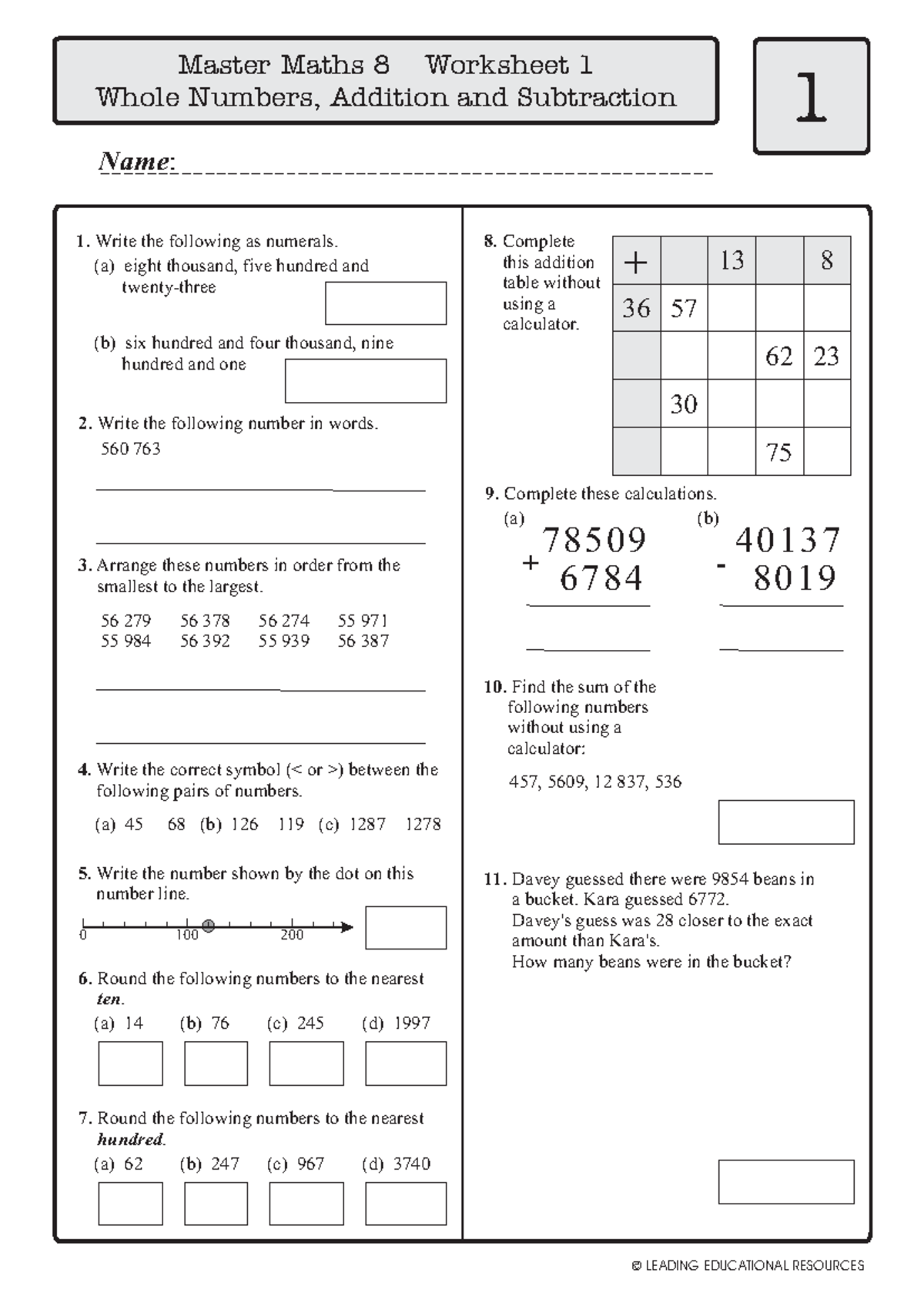 Master Maths 8 Worksheets: Whole Numbers, Operations, and Problem ...