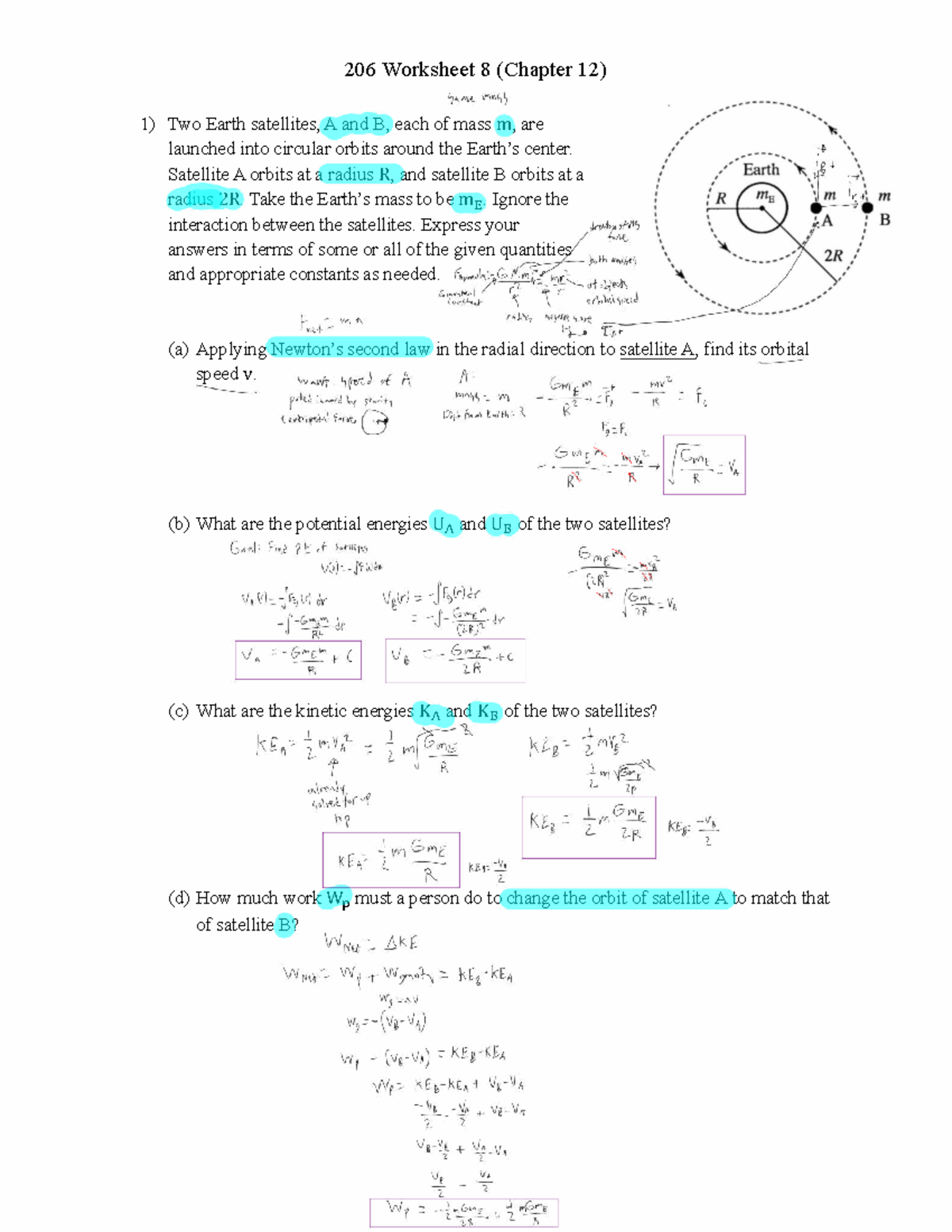206 Worksheet 8: Orbital and Circular Motion Problems in Chapter 12 ...