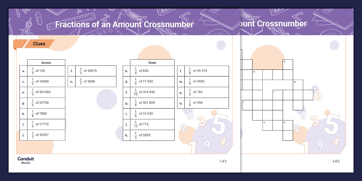 Fractions of an Amount Crossnumber (Numerator = 1) - Twinkl
