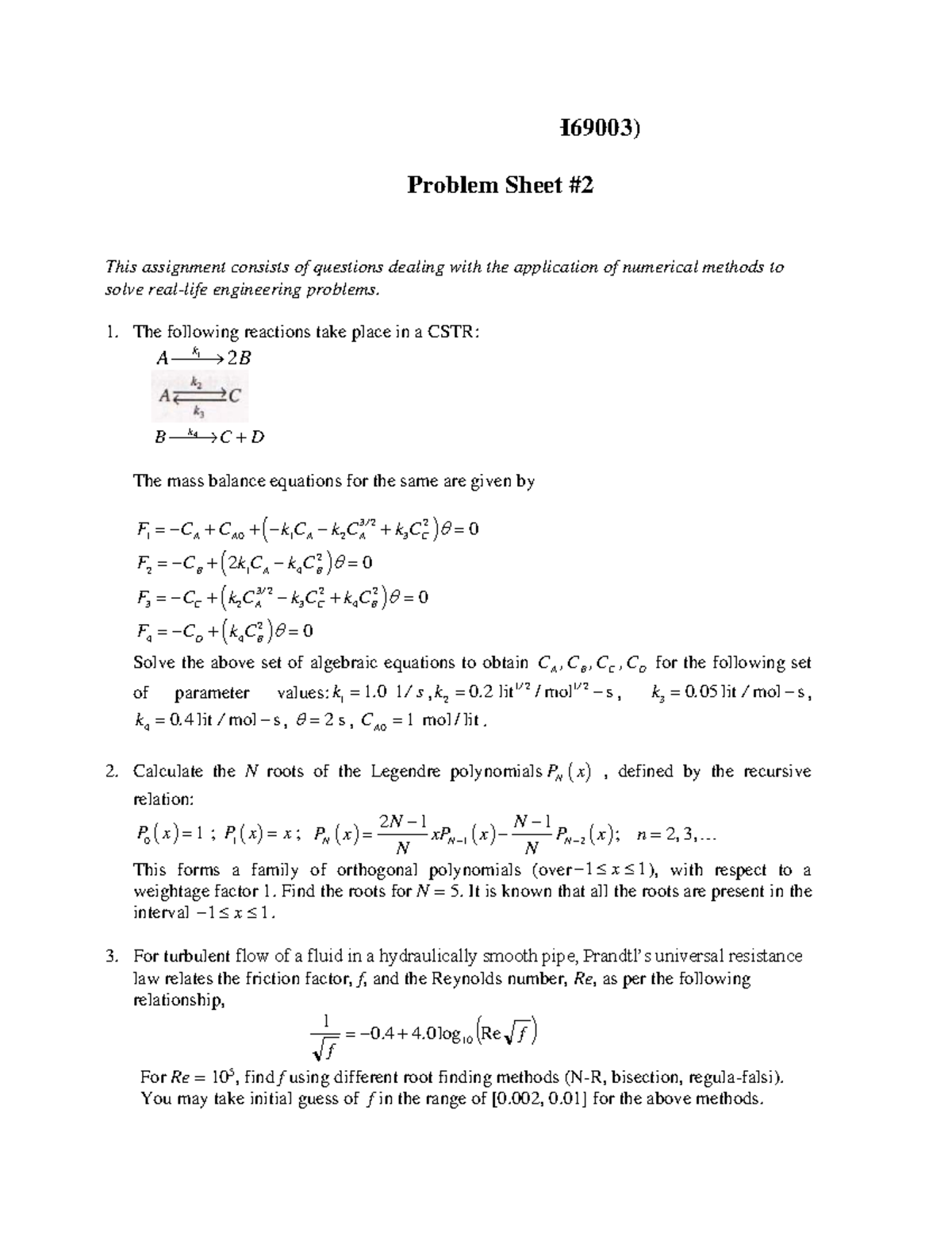 M.Tech Design (CH69003) Numerical Methods Problem Sheet - Studocu