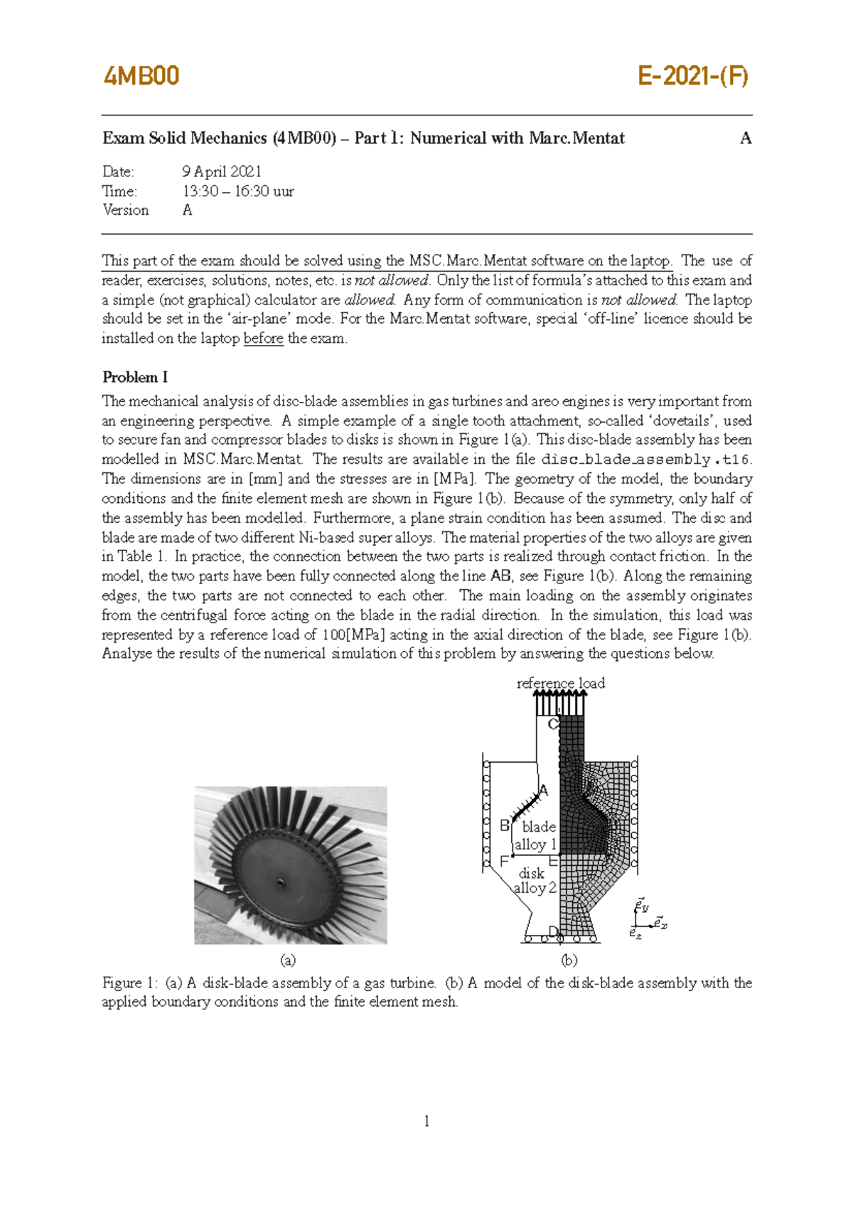 Final Exam Solid Mechanics (4MB00) – Part 1: Numerical - Studeersnel