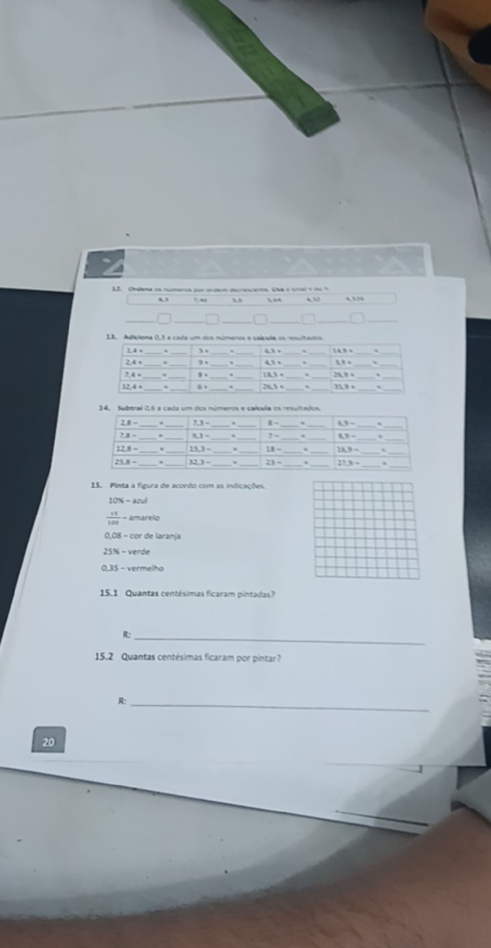 Subtrai 0,6 a cada um dos números e calcula