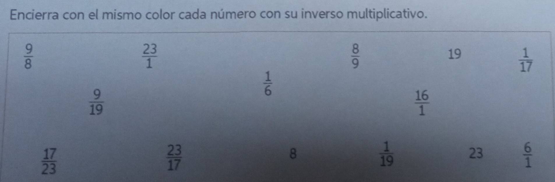 Solved: Encierra con el mismo color cada número con su inverso ...
