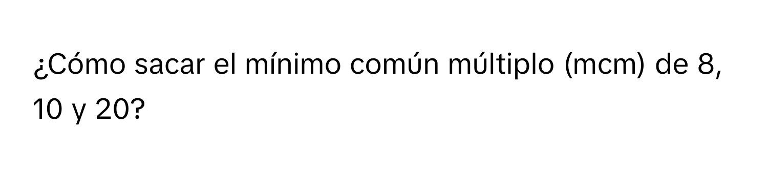 Solved: ¿Cómo sacar el mínimo común múltiplo (mcm) de 8, 10 y 20? [Math]