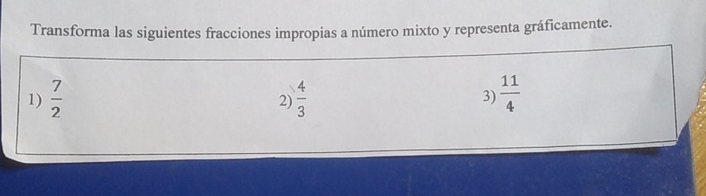 Solved: Transforma las siguientes fracciones impropias a número mixto y ...
