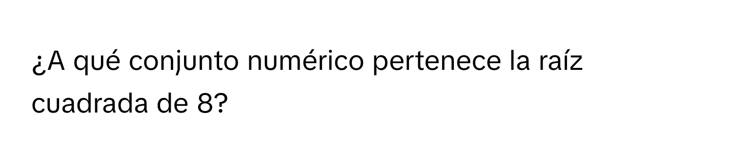 Solved: ¿A qué conjunto numérico pertenece la raíz cuadrada de 8? [Math]