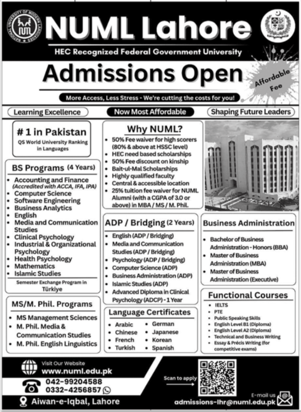 National - ADMISSIONS OPEN – SPRING 2026 (PHASE II) | NUML LAHORE Your ...