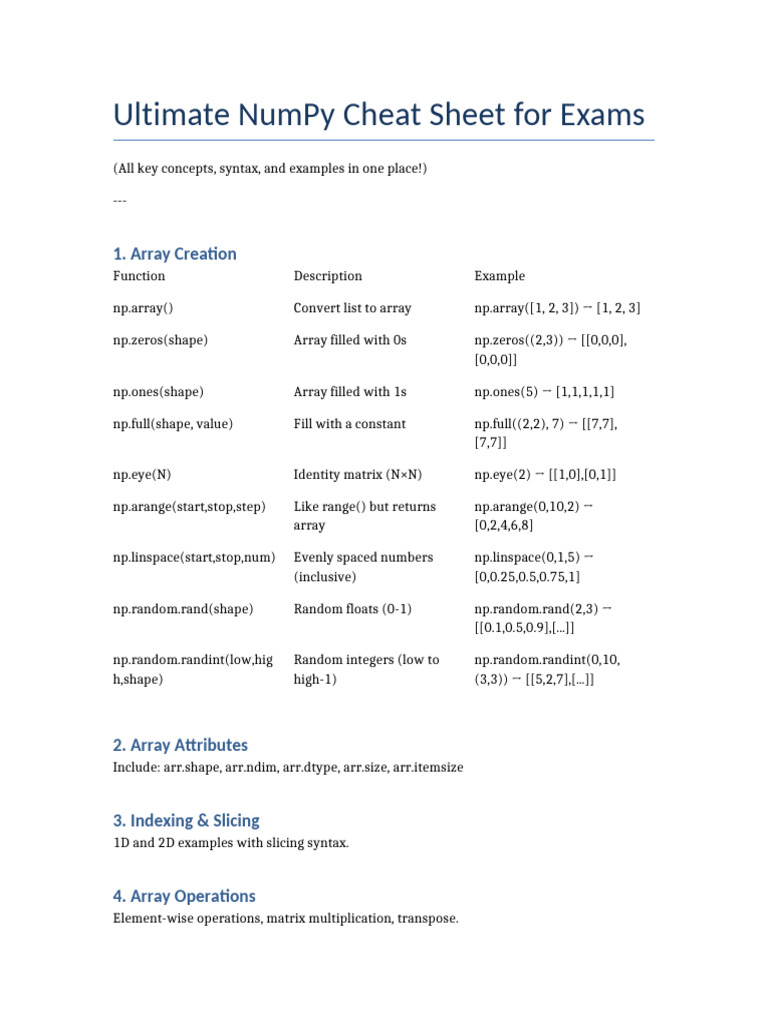 Essential NumPy Cheat Sheet for Quick Reference and Learning | Course Hero