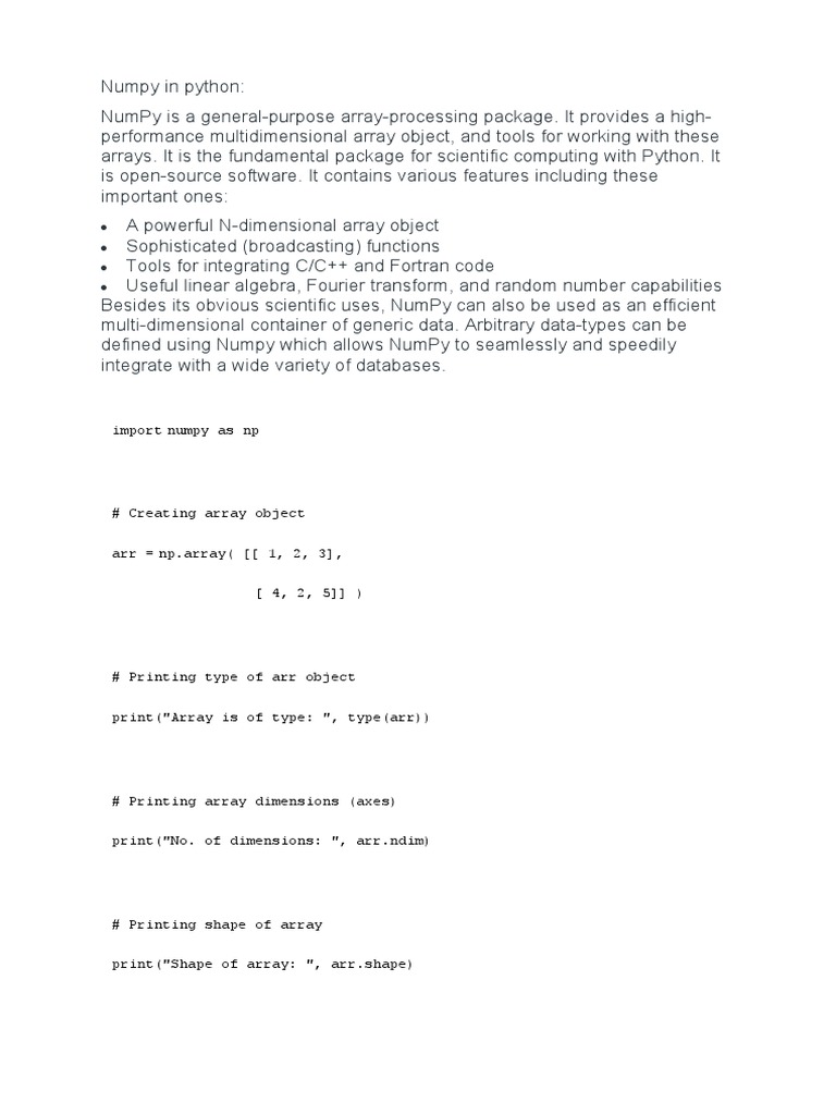 numpy.pdf - NumPy in Python | Set 1 Introduction What is NumPy? NumPy ...