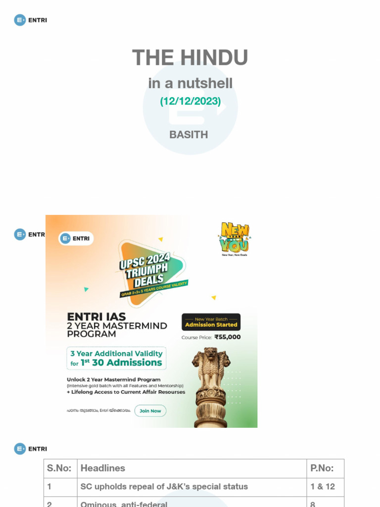 THE HINDU in A Nutshell (12 - 12 - 2023) PDF | PDF | Agriculture | Food ...