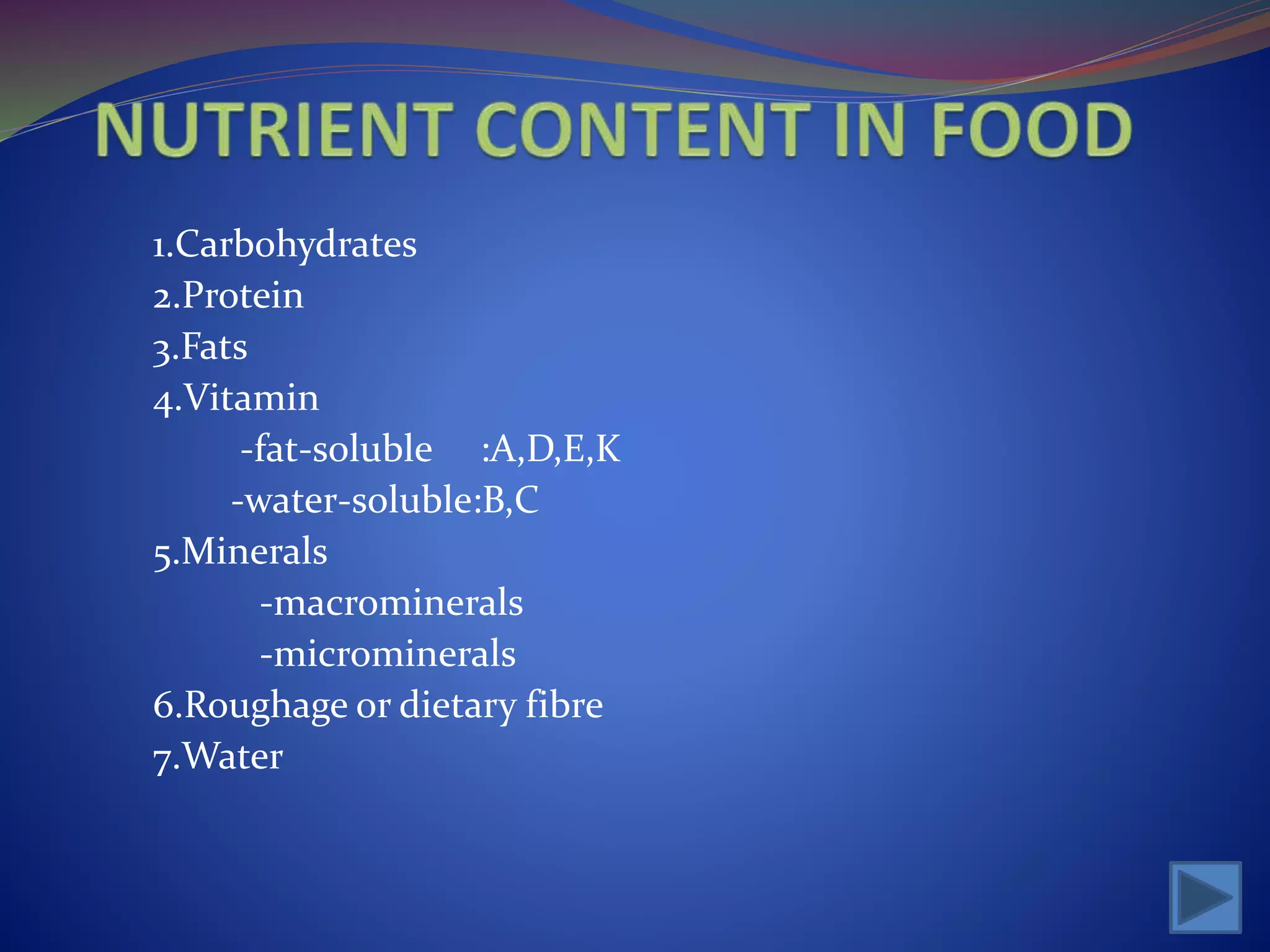 Nutrient content in each of the food types [13] | Download Scientific ...