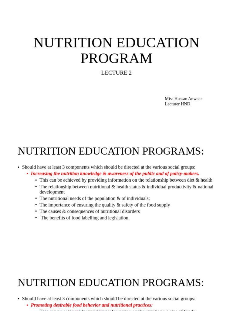 Nutrition Education Program | PDF