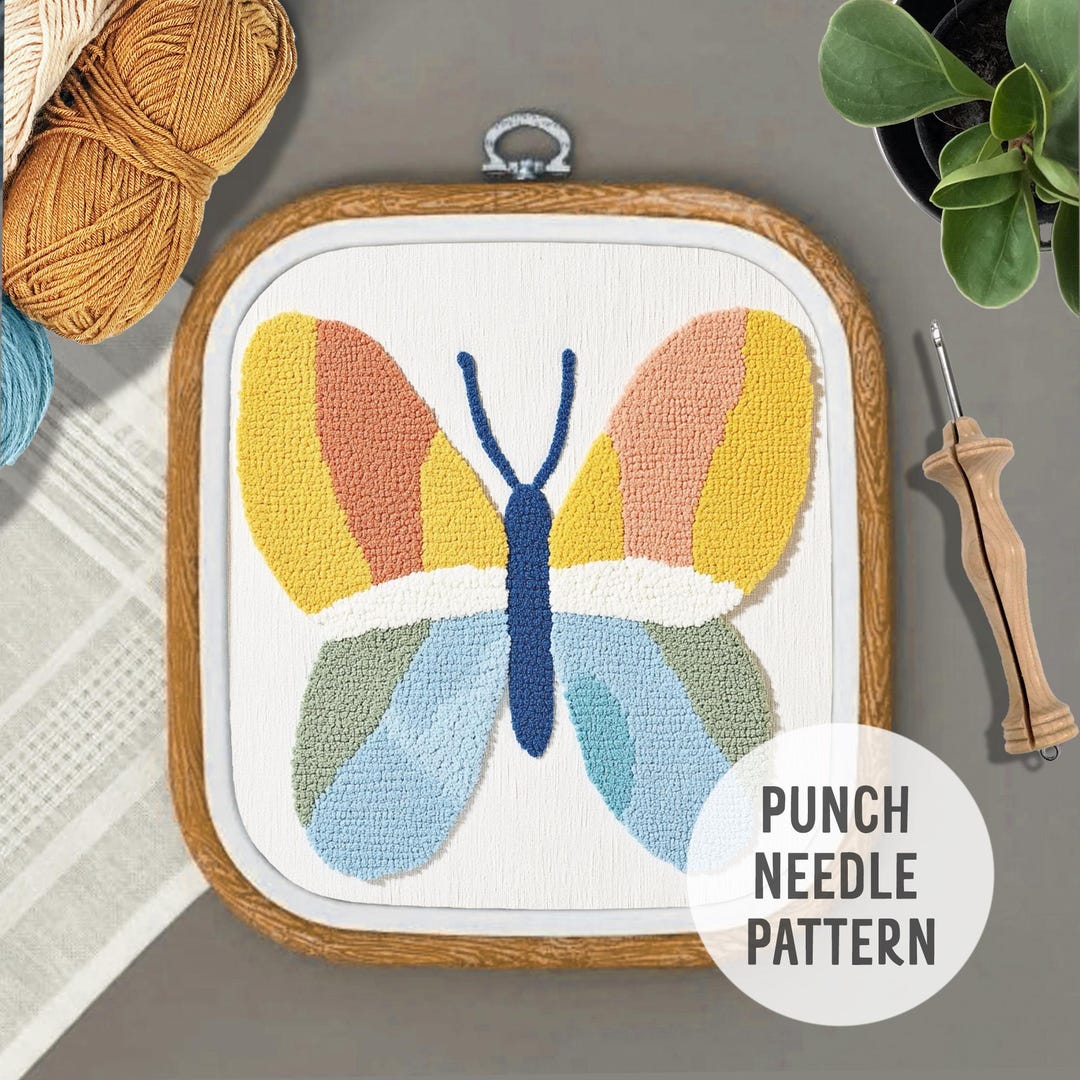 Butterfly Punch Needle Pattern: Tufted Insect Design, Nursery Decor ...