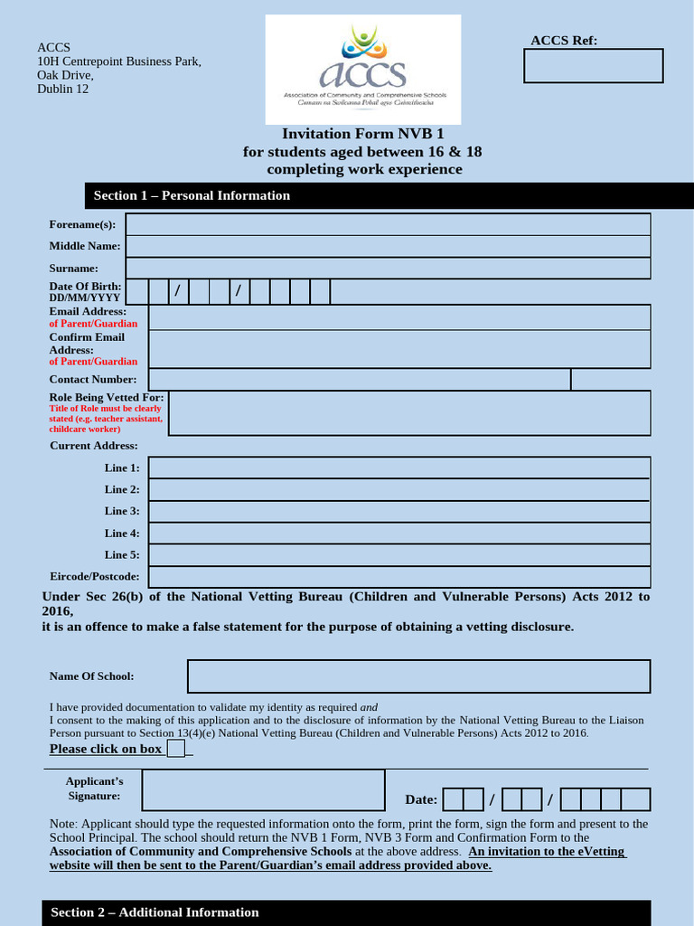 E Vetting Invitation Form NVB1 For Under 18s 2 | PDF