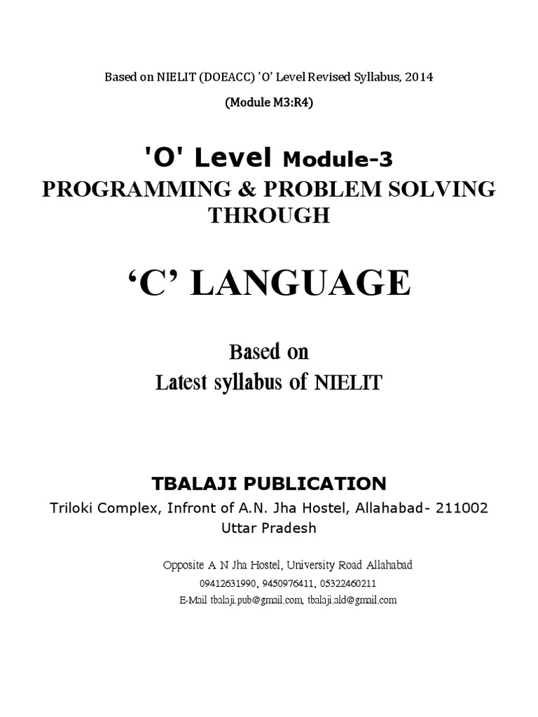 Doeacc 'O' Level || Programming and Problem Solving Through 'C ...