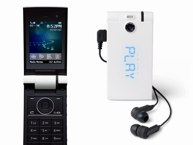 O2 Cocoon mobile phone available in black and white clamshell ...