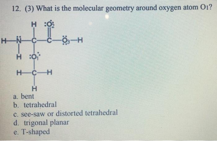 Solved 12. (3) What is the molecular geometry around oxygen | Chegg.com