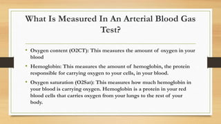 Abg test /arterial blood gases/pao2/paco2/o2 saturation/pH/o2 ct/ in ...