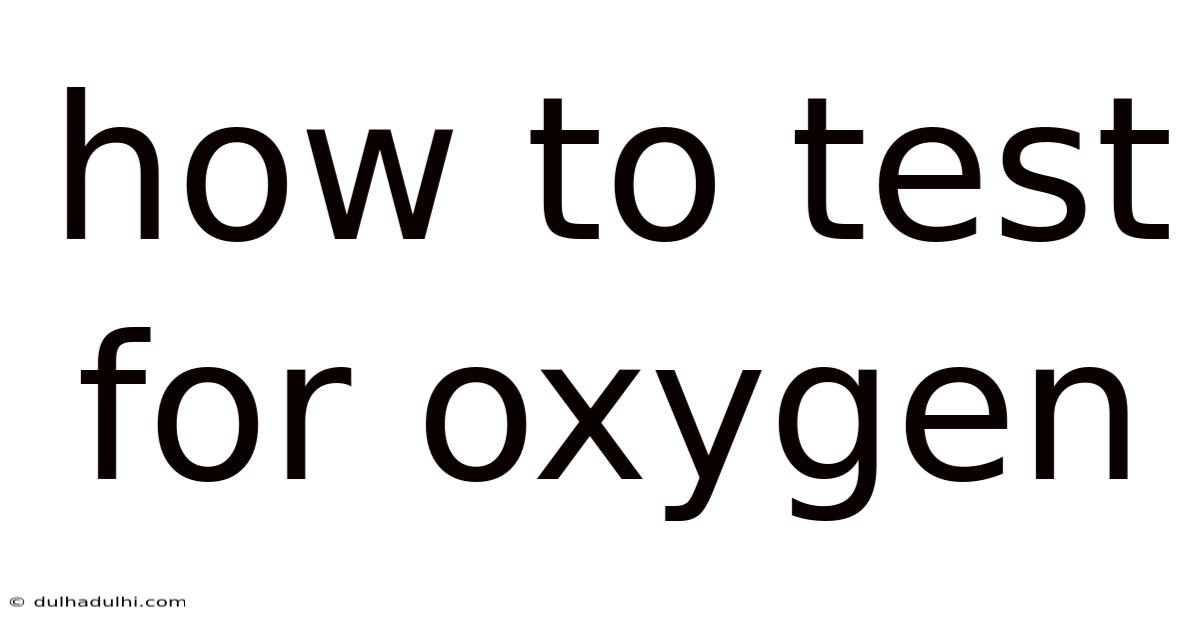 How To Test For Oxygen